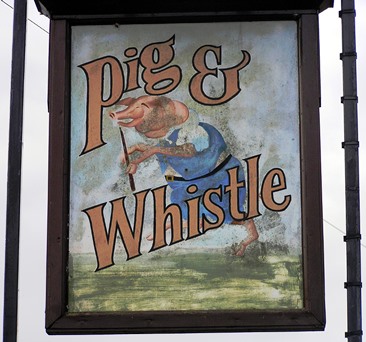 Pig & Whistle – This name seems like one of those modern Newt & Cucumber or Kebab & Calculator type names, but actually it goes much further back. The phrase ‘Pigs and Whistles’ dates back over 300 years, and means ‘Rack and ruin’. Since successive generations have unfairly held that frequent visits to pubs were tantamount to self-ruination, to go to the pub might be to ‘Go to Pig(s) & Whistles. Again, an average pun, but one which made for some very pretty pub signs.